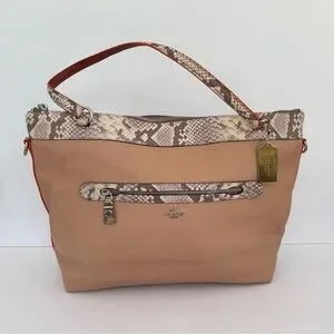 Coach Tyler Tote in Polished Pebble Leather with Python-Embossed Trim (F11759). Gorgeous bag, slightly used with wear/discoloration. Still looks great and would be a perfect addition to any vintage coach collection. Silver hardware, both shoulder length strap and longer strap included.