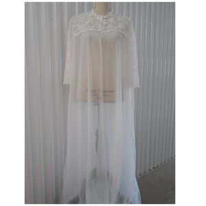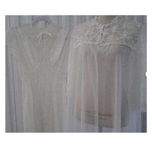 Vintage Nightgown Robe Set Chiffon Lace Peignoir Robe Sz 36 & Nightgown Size 32