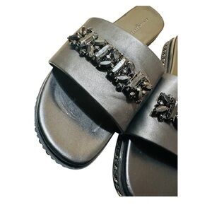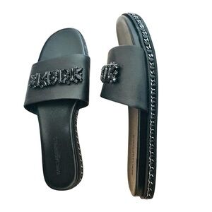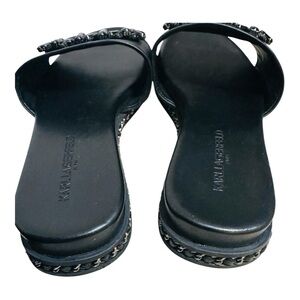 Karl Lagerfeld Paris Womens Bijou Leather Embellished Slide sandals