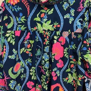 Gretchen Scott Designs Navy Floral and Animal Print Blouse
