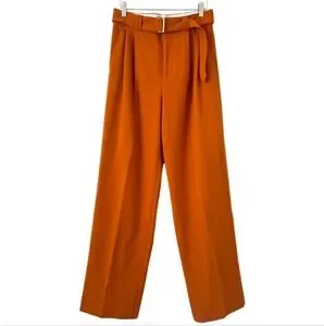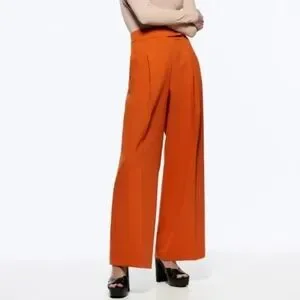 Zara Orange Wide Leg Pants with High Waist and Stylish d-ring Belt