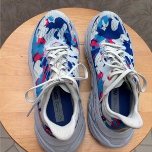 Hoka Blue and Red Clifton Edge geometric women’s size 6.5