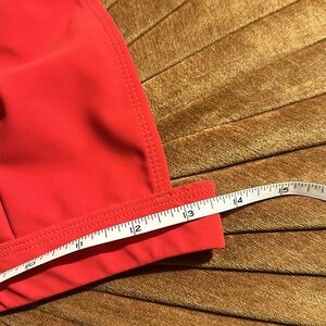 Zimmermann Red Bikini, featuring plunging trip top and high-waisted bottoms with adjustable side ties. 72% Polyamide (Nylon), 28% Elastane (Spandex). Zimmerman size 3 = US 8-10, UK 14, AU 14, IT 46, FR 42. Used in excellent condition. No signs or wear or use.