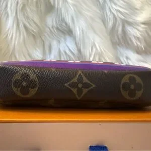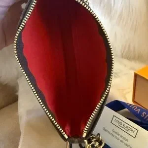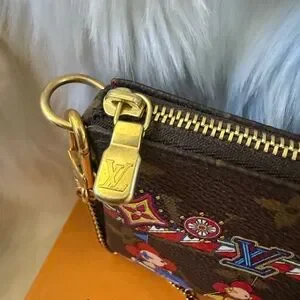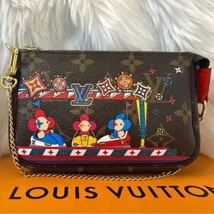 This is an authentic LOUIS VUITTON Monogram 2020 Christmas Animation Bumper Cars Mini Pochette Accessories in Coquelicot. This chic small accessory pouch is crafted of monogram coated canvas, with a whimsical and colorful design of House's Vivienne mascot riding in bumper cars. The bag features a polished brass chain-link wristlet strap, and a matching top zipper that opens to a red fabric interior.