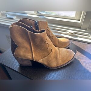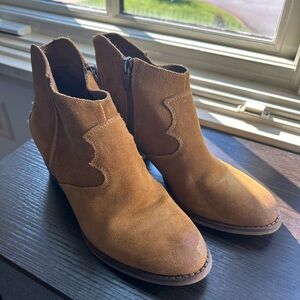 Marc Fisher Tan Suede Ankle Boots with Stacked Heel