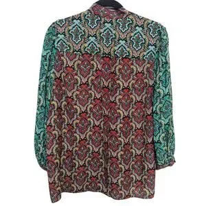 Alice + Olivia Paisley Print Silk Blouse Bow Neck Top Size Large