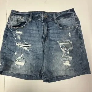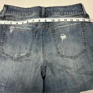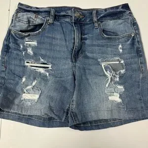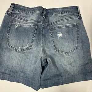 Embrace a casual, laid-back style with Maurices' blue distressed jean shorts. These shorts feature a classic blue wash with deliberate rips and tears for a trendy, worn-in look. The medium-weight denim offers comfort and durability, while the contrast fading adds depth to the fabric. Perfect for everyday wear, these shorts are a versatile addition to your wardrobe.