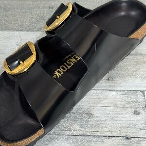 BIRKENSTOCK Arizona Big Buckle Slide Sandal - High Shine Black - Sz-7-7.5.US