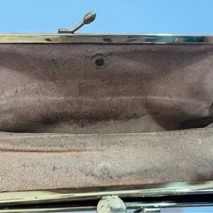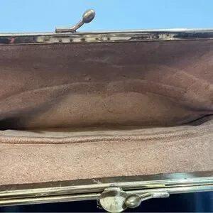 Wallet has normal wear and tear and is in FAIR condition for its age. The exterior is very clean with minimal scuff or scratch marks. However, there are in holes throughout the front exterior and on the inside of kisslock.