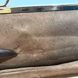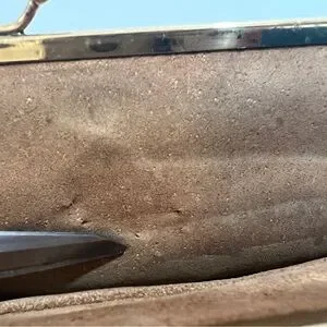• The interior of the kisslock the leather where the button is placed is cracked.