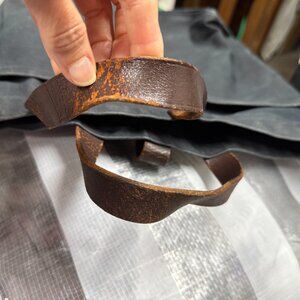great bag just not used lately, made to look tarnished and old and used. good condition. has been handwashed, the handle has some wear. They use old belts and gunslings and old brass findings. Great work, weekend and day trip bag. Great pockets on inside, they used old bed sheets and antique ticking for inside areas. Great for an artist with lots of tools too, I have several of their totes and this does not get used much anymore, so selling.