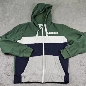 Lacoste Sport Hoodie Mens Medium Green White Navy Full Zip Sweatshirt Jacket