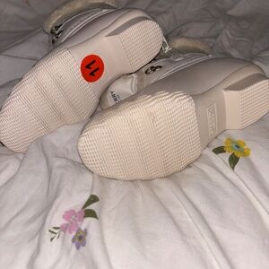 Kids size 11 . No shoe laces. They are new. I got they for my niece. Her feet grew skipped 1 whole size from morning to night. She never got to try them on. No box.
