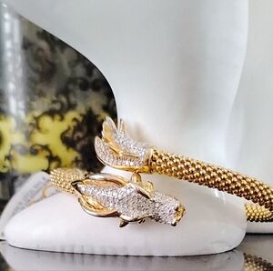 Elegant gold plated with diamonds dragon wrap bracelet only, perfect for adding a touch of mystique to any outfit. Bundle with matching NWT bracelet and gently preloved ring for a discount.