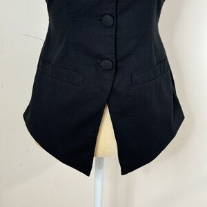 This elegant black vest is perfect for adding a touch of sophistication to any outfit. Its sleek design and classic color make it a versatile addition to your wardrobe.