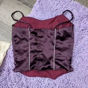 *sold*Sophisticated satin corset top in deep purple with white trim. Ideal for a stylish ensemble. Vintage and handmade