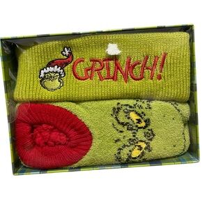 💜🌼NIB Grinch Knit Beanie and Socks Set