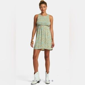 RVCA floral high neck trigger mini dress with smocked bust shale color NWT SZ XS