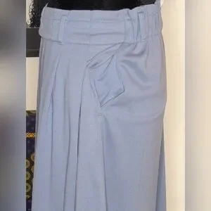 These versatile periwinkle blue paperbag waist cropped maxi pants from Uniqlo features a flattering A-line silhouette with elegant pleats and a chic flat front. Perfect for both work and casual settings, its timeless design and fitted flattering waist ensures a comfortable and stylish fit throughout the day.