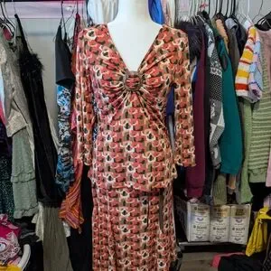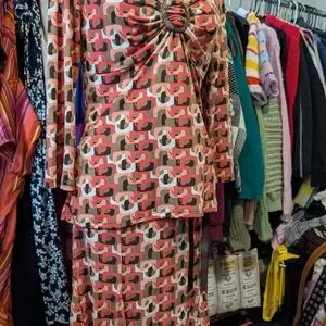 Stylish geometric print set featuring a unique ring detail. Perfect for any occasion. deadstock old Sears