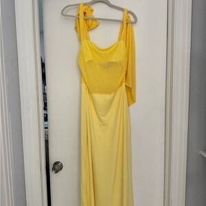 Bright yellow dress by Selfie Leslie. Features delicate straps and a flowing design.