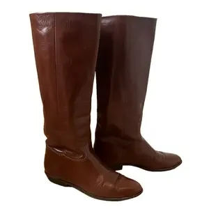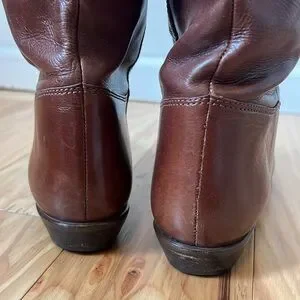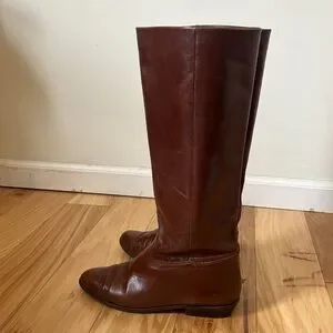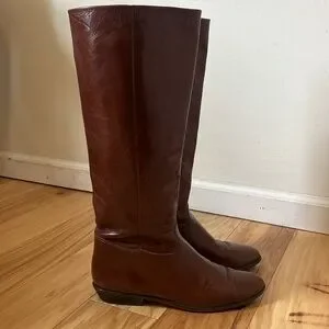 Vintage Nine West Q-Louisa 2 Brown Leather Flat Riding Boots Women’s Size 7.5