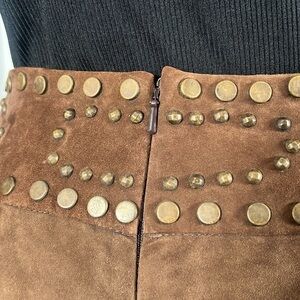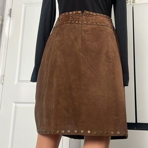 VS2 by Vakko Vintage Brown Studded Slit Suede Lined Skirt Size 10