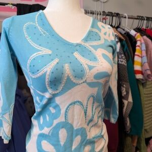 Elevate your style with this aqua floral long sleeve top. Perfect for adding a splash of color to your wardrobe.