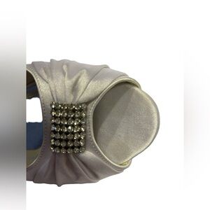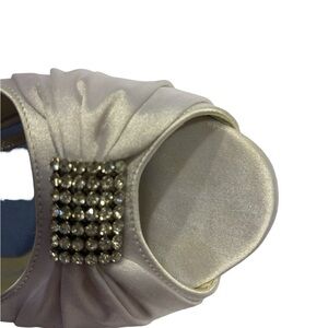 Elegantpark Peep Toe Rhinestone Flats Pleated Satin Wedding Bridal Shoes Size 10