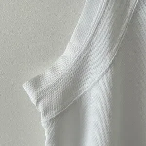 Good condition with some imperfections: Thin dark thread and one snag on front as shown in the last 3 photos. No stains, holes, discolorations, rips, pilling, or other flaws present.