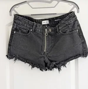 DL1961 Renne Blackwood Distressed Black Charcoal Jean Shorts