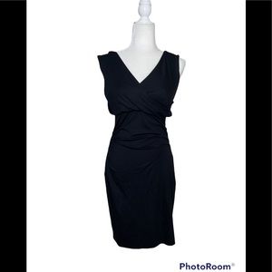 DVF Diane Von Furstenberg Black Faux Wrap Parker Ruched Jersey Dress siz…