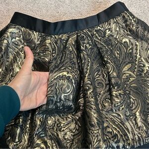 With its flattering A-line silhouette and intricate brocade detailing, this skirt will effortlessly add a touch of opulence to any outfit.