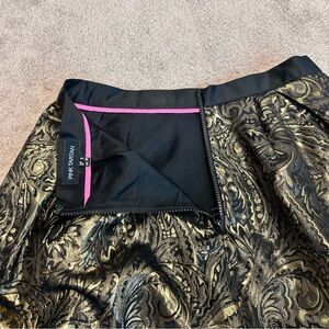 PINK Tartan gold brocade Tiffany mini skirt metallic skater circle Sz 6 NWOT