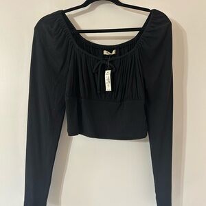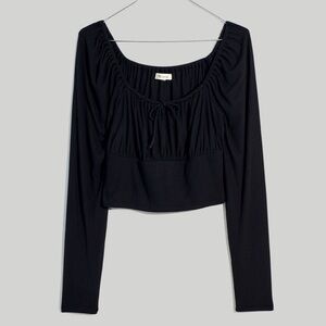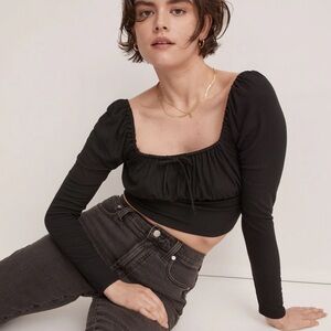 NWT Madewell Ribbed Square-Neck Long-Sleeve Top in Black