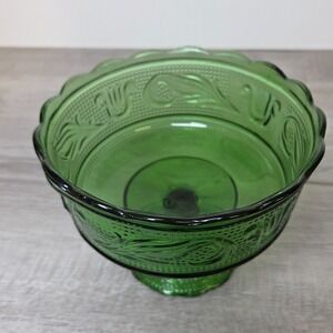 Vintage E O Brody M6000 Emerald Green Pressed Glass Candy Compote Dish Pedestal