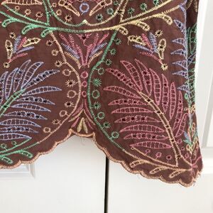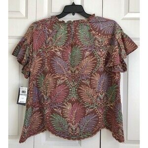 Democracy Women's Top Pullover Short Sleeve Embroidered Leaves Multicolor 160