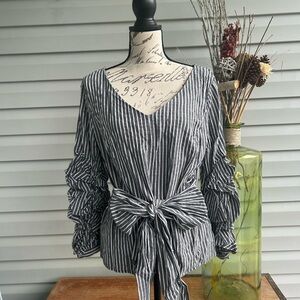WHBM seersucker ruffled sleeve blouse. Size 16