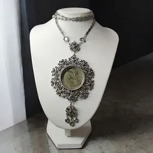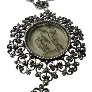 Beautiful Silver-tone with a Lovely Cameo Intaglio Glass Pendant depicting Cupid & Venus with dangling Tassel