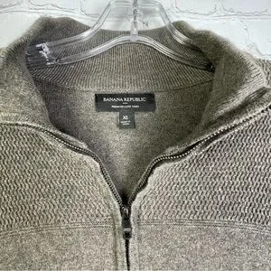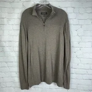 BANANA REPUBLIC Men's cotton silk cashmere brown gray quarter-zip sweater, sz XL