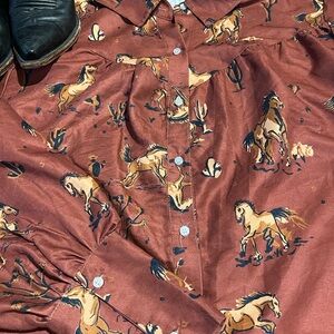 7am Women’s XL Rust Horse Print Button-Up Shirt Western Collard