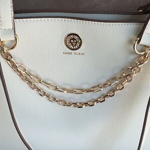 Anne Klein Off White and Gold Shoulder Bag with Chain Details Like New!