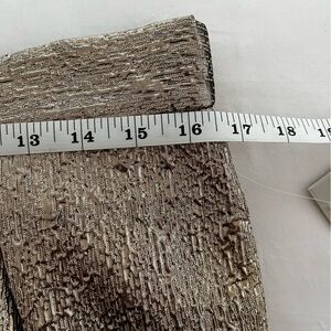 Features a golden-bronze hue with pockets and exceptional pleating