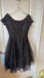Style/Features: Sophisticated black dress, ideal for formal events featuring pleaded accents, a short sleeve with Bateau drop shoulder neckline, A-Line midi length style, and concealed zip closure at back. Made from 100% Silk.