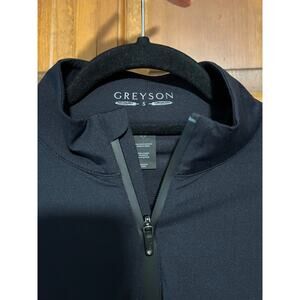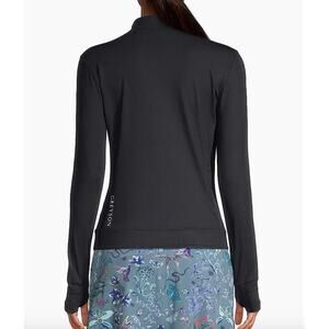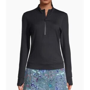 Stay sleek and sporty in this Greyson Halley Quarter-Zip Activewear Top in Shepherd Black. Made from a breathable, stretchy nylon-spandex blend, this performance pullover features a mockneck, concealed half-zip front, and thumbhole cuffs—perfect for layering or solo wear during workouts, golf, or cool-weather activities.
