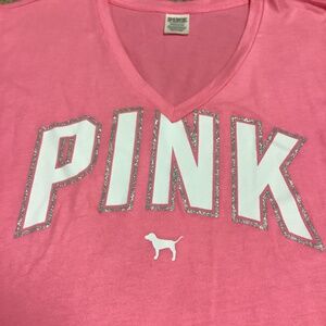 PINK Victoria’s Secret Pink LOGO V-neck Tee * Small