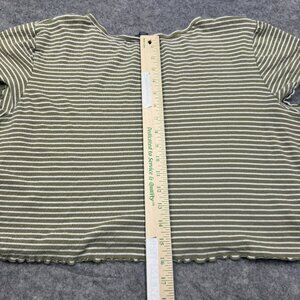 American Eagle T Shirt Womens XL Green Striped Ribbed Crop Top Lettuce Hem