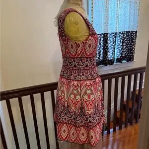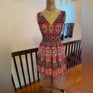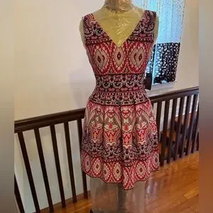 Vince Camuto Colorful Pink and White Fit and Flare Sleeveless V-neck Dress