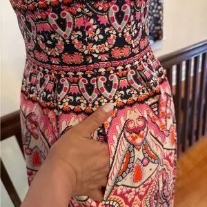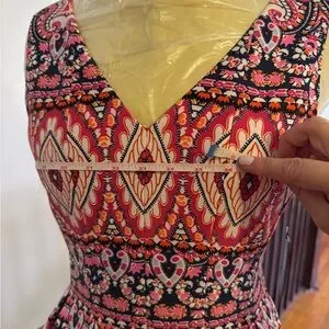 This Vince Camuto dress is perfect for a wedding guest or cocktail event, featuring a flattering fit and flare silhouette. The sleeveless design and V-neckline add a touch of elegance, while the pink and white colors make it a standout piece. Crafted with attention to detail, this dress combines style and comfort effortlessly.