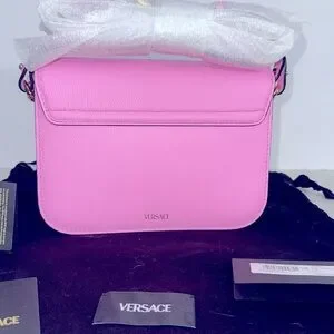 Discover the epitome of luxury with the Versace Pink and Gold Crossbody Bag. This exquisite piece combines vibrant pink hues with elegant gold-tone hardware, creating a striking contrast that captures attention. Crafted with high-quality materials, it offers both style and functionality, making it a perfect accessory for any occasion.